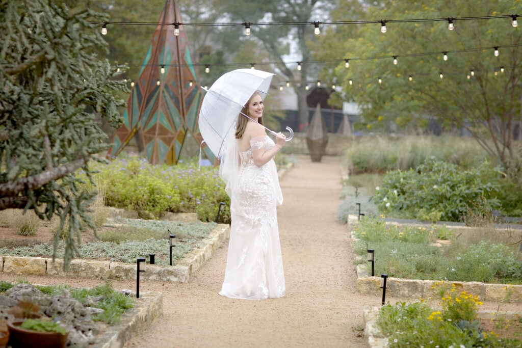 Rain or shine, a bridal session is about capturing the bride’s beauty and spirit, and Rachel’s grace shone through every misty frame. The soft rain added a dreamy, ethereal quality to the images, perfectly complementing the lush greenery at the Lady Bird Johnson Wildflower Center.